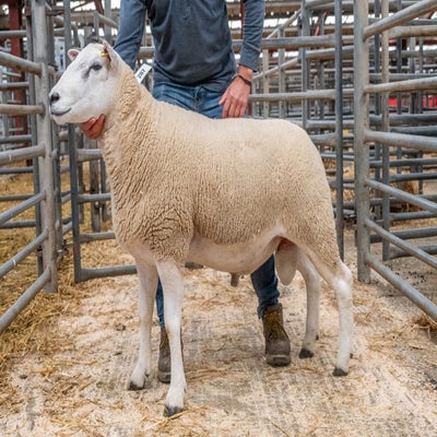 The leading female came in the form of the first prize individual ewe in the pre-sale show from Farmstock Genetics, Over Whitlaw Farm, Lindean, Selkirk. Managing to buy this quality sheep was HM Wells, Cardigan, Dyfed.
