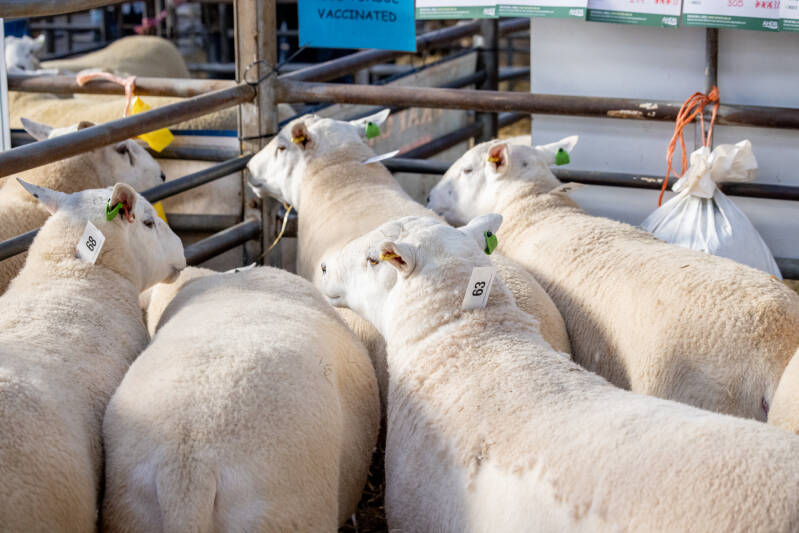 Ewe lambs secured a top price of £240 per head for the first prize pen of 5 and champion females from Farmstock Genetics. These girls found a new home with A G Selway, Dorset.